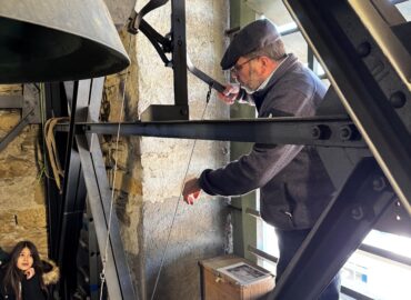 Auf schiefen, knarrenden Stufen durften in den letzten Wochen die Zweitklässler entlang der dicken Turmmauern bis hoch hinauf zum Glockenstuhl steigen.