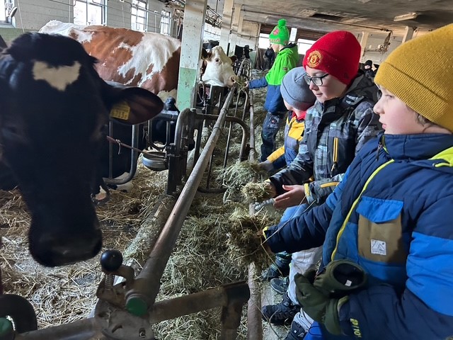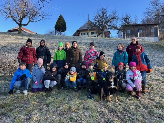 Am Donnerstagmorgen vor den Fasnachtsferien besuchte die Klasse 4 B den Bauernhof, auf dem Frau Schürch aufgewachsen ist, und half dort tatkräftig mit.