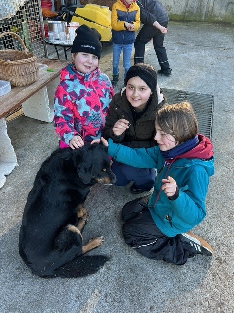 Neben der Arbeit blieb aber auch noch genügend Zeit, um mit dem Hofhund Maylo zu kuscheln sowie die Kühe, Kälber und Gänse zu besuchen.