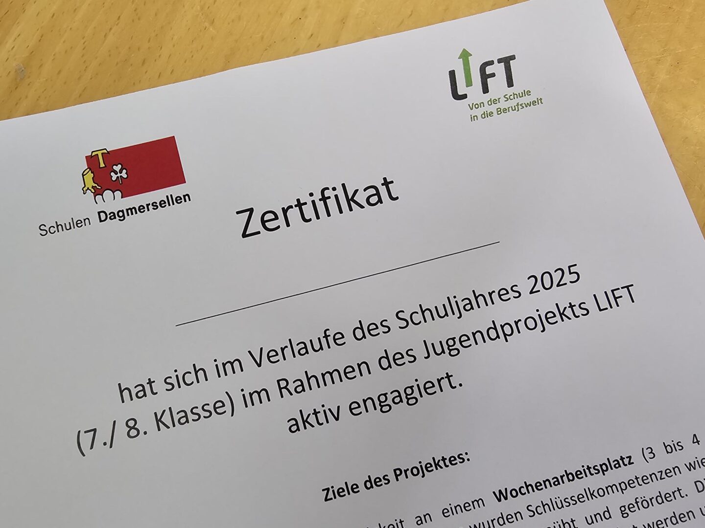 Insgesamt 12 SchülerInnen erhielten ihr LIFT-Zertifikat, nachdem sie während jeweils zwei Mal 12 Mittwochnachmittagseinsätzen erfolgreich an einem Wochenarbeitsplatz mitgearbeitet hatten. Zu Beginn des Anlasses ermöglichte das Alterszentrum Eiche im Rahmen einer Betriebsführung spannende Einblicke in verschiedene Arbeitsbereiche. Dabei wurden die Pflege, die Wäscherei, die Küche sowie der Betriebsunterhalt vorgestellt. Die vielfältigen Aufgaben und Abläufe hinter den Kulissen vermittelten einen eindrücklichen Einblick in den Arbeitsalltag. Anschliessend gaben Filmaufnahmen einen lebendigen Einblick in die verschiedenen Arbeitseinsätze der Jugendlichen. Im feierlichen Rahmen wurden anschliessend die LIFT-Zertifikate überreicht. Zum Abschluss des Anlasses fand ein gemeinsamer Apéro statt. Bereits im Januar starten die nächsten Schüler*innen aus der KSS1 in eine neue LIFT-Runde.