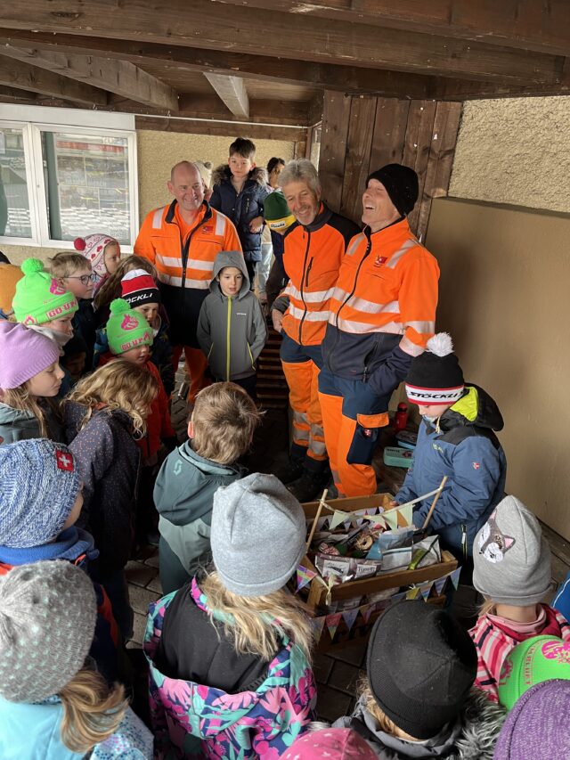 Am vergangenen Donnerstag bedankte sich das Schulteam bei den Gemeindearbeitern mit einem frühlingshaften Lied und einem kleinen Geschenkkorb – als Zeichen der Wertschätzung für ihren grossen Einsatz.