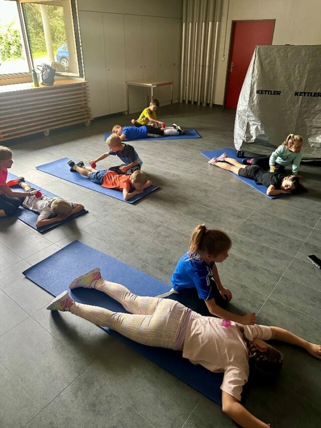Klassendurchmischt durften die Kinder verschiedene Posten absolvieren. Das Velorennen mit den Mini-Rennvelos, das Würfelfussball und auch das Huckepack-Spiel standen bei den Kindern ganz hoch im Kurs. Das Turm bauen, die Massage-Ecke und der riesengrosse Fallschirm sorgten für eine lustige Abwechslung zwischen den intensiven Sportspielen. Auch bei der UNO-Stafette und beim Räuber-und-Polizist-Spiel kamen alle Gruppen auf ihre Kosten. Überall gaben die Kids ihr Bestes, damit sie einen Aufkleber sammeln konnten und so immer etwas näher ans Ziel rückten. Der Morgen verging wie im Flug, und es konnte viel gelacht und ausgepowert werden. Etwas erschöpft machten wir uns auf den Rückweg zum Schulhaus, wo wir alle gemeinsam auf dem Pausenplatz unser feines Picknick aus dem Rucksack genossen. Abschliessend konnte man noch die übrige Energie auf dem Spielplatz loswerden. Ein toller Sporttag ging zu Ende – mit müden Beinen, aber lachenden Gesichtern machten sich die Kinder auf den Heimweg.
